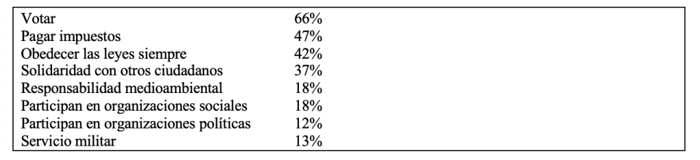 Tabla 10: Prácticas indispensables para ser considerado ciudadano entre la población latinoamericana:
