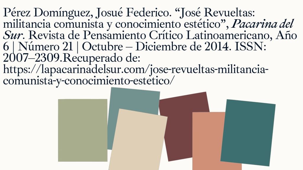 Así mismo, es necesario reconocer con Henri Lefebvre que la obra de Revueltas se inscribe en el mismo horizonte teórico e histórico y “merece la misma reputación que los trabajos […] de los de la Escuela de Frankfurt y de las demás escuelas marxistas ‘europeas’” (Lefebvre, 1982: 14). Además de reflexionar sobre la dialéctica como método crítico de abordaje a la realidad, la obra de Revueltas, al igual que la de otros marxistas occidentales, se enfrentó al problema de tener que reflexionar desde y sobre la estética para plantear la crítica teórica y política contra el dogmatismo imperante en el movimiento comunista internacional. Y es desde esa reflexión teórica sobre la estética y los problemas del arte que Revueltas levanta y defiende la bandera de la “libertad humana”, aún en contra de los dogmas y los poderes establecidos en los países “socialistas” y los partidos comunistas oficiales, incluido el mexicano. Una vez considerado lo anterior, entraremos a abordar algunas de las cuestiones fundamentales del pensamiento revueltiano en el ámbito estético.