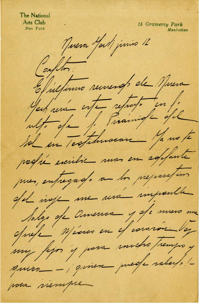 Imagen 1. Carta manuscrita de Haya de la Torre a Carlos Pellicer [Fragmento]. 12 junio de 1924