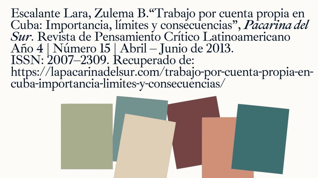 Este artigo discute a importância do autoemprego para a sociedade cubana e para o modelo de atualização econômica do socialismo. Este é um processo complexo, que tem em si uma confluência de outros processos e fatores internos e externos à natureza, expressando decisões num contexto de problemas econômicos no interior da ilha e da crise do capitalismo mundial, e a existência de tendências de integração regional e reestruturação do poder no interior da ilha, portanto, satisfazer todas as suas dimensões exigiria uma análise mais ampla para a compreensão completa. Relevante aqui, aproximando-se do alargamento do trabalho não estatal, como um governante, reconhece a existência de um sujeito que se relaciona de forma diferente com a propriedade, que organizou formas não estatais de produção, se apresenta como uma alternativa ao governo para aumentar a produção, principalmente de cooperativas agrícolas. No entanto, vamos nos concentrar no autoemprego, que é considerado de importância estratégica para o governo, enquanto trabalham para reduzir o estado de repouso, a população deriva não relacionada com o uso de habilidades aprendidas, tanto no contexto familiar como em outras áreas de aprendizagem, e estimular o valor do trabalho. Na sociedade cubana, de cuentapropismo, desenvolver novos códigos de lealdade ao governo cria novas oportunidades para a participação na economia nacional, mas é controlado pelo Estado. Permite que pessoas satisfaçam necessidades para obter melhor rendimento, em comparação com outros setores e com a população a ela ligada. Você pode ir adquirir lógico do que as estabelecidas pelos valores revolucionários, que, por sinal, vivem com eles.